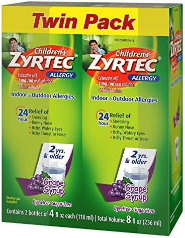 Amazon Com Zyrtec Jarabe De Alergia Infantil De 24 Horas Con Cetirizina Uva Sin Azucar Paquete Individual De 4 Onzas Liquidas Salud Y Hogar